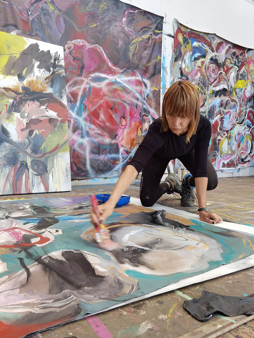 Critically, her painting has been read in relation to informalism and abstract expressionism, particularly in its emphasis on gesture, material force, emotional density, and the canvas as a site of event rather than illustration. But beyond those references, the work remains unmistakably her own: personal, visceral, and unwilling to become complacent.