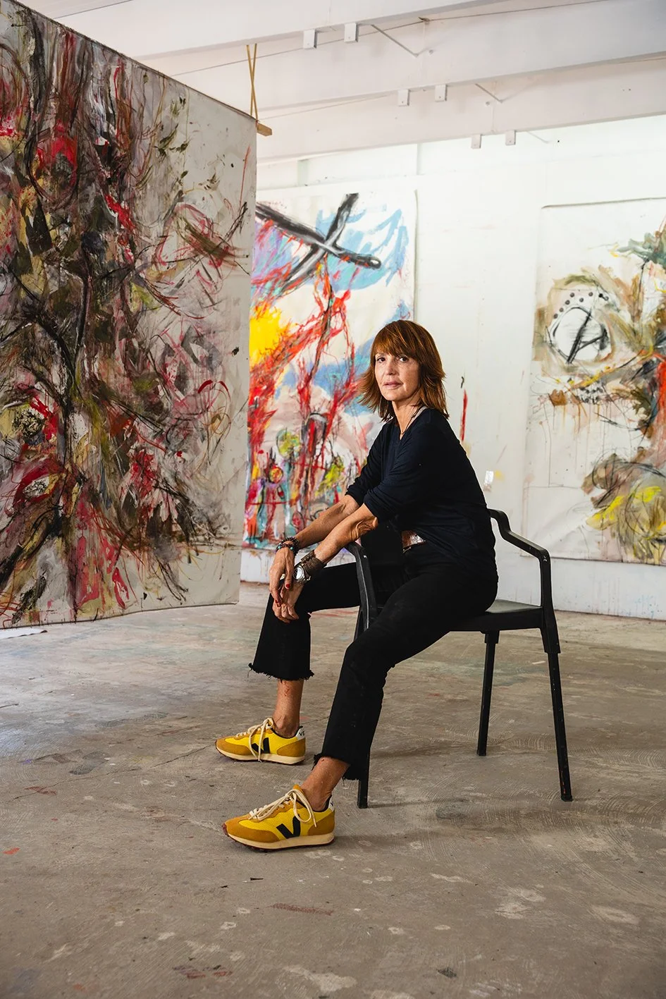 Aimée Joaristi creates work that is intense and deeply personal, shaped by the force of gesture, materiality, color, and chance. Far from seeking to please, her practice invites viewers to feel, question, and confront what hurts, what persists, and what remains hidden.